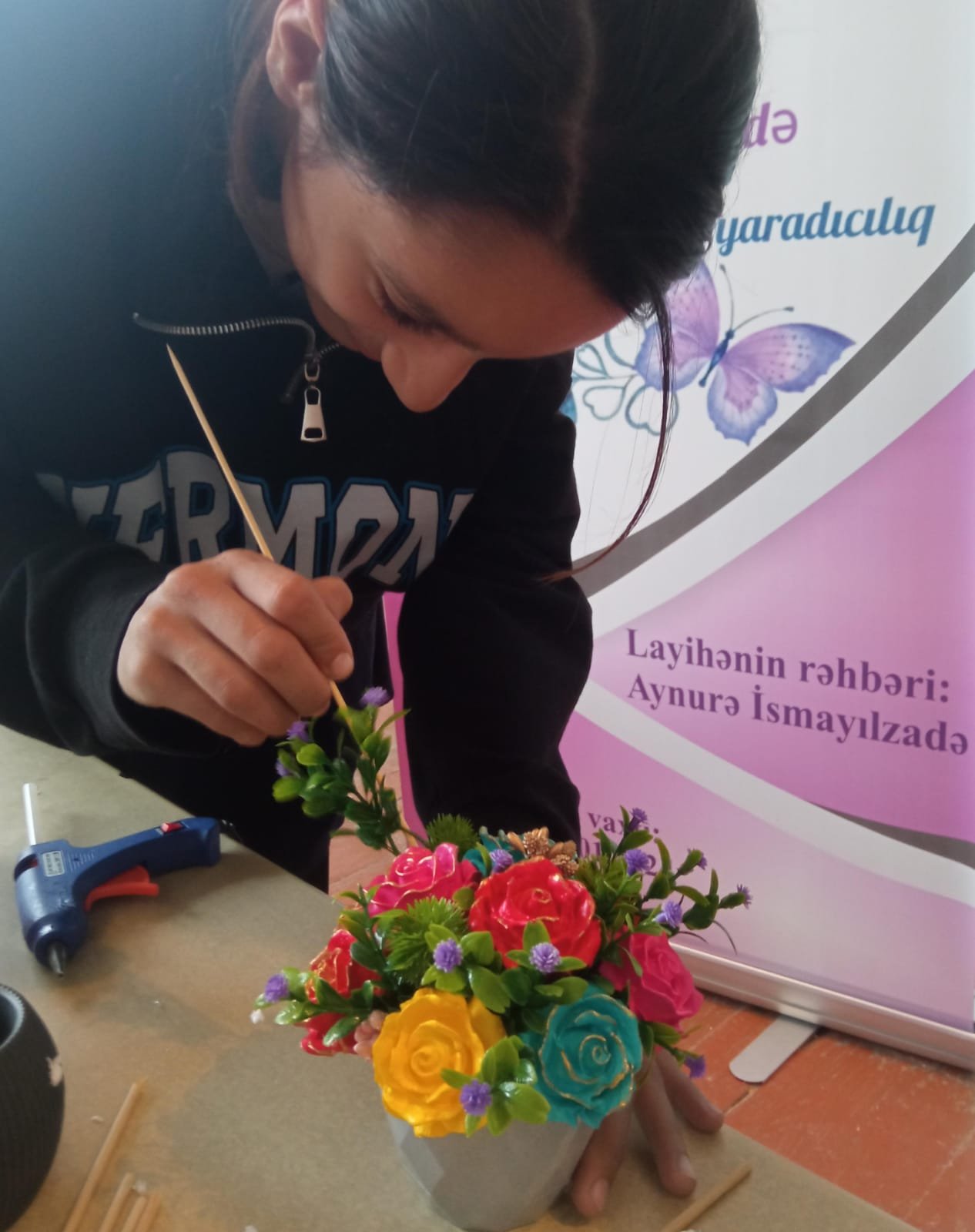 Layihənin təqdimatı 17 oktyabr 2023-cü il tarixində keçirilmişdir. Təqdimat mərasimində Ucar Təhsil Sektorunun üzvləri, Ucar rayonunun bir sıra təhsil müəssisələrinin direktor və müəllimləri, valideynlər iştirak etmişdir. Layihə çərçivəsində Ucar şəhər 1№li texniki və humanitar fənlər təmayüllü məktəb-liseydə yaradıcılıq dərnəyi qurulmuş, həftədə 2 dəfə olmaqla hər biri 2 saat davam edən təlimlər təşkil edilmişdir. Təlimlər zamanı şagirdlərə ətirli daş tozunun məhlul halına salınması, müxtəlif formalı qəliblərə tökülərək şəkilləndirilməsi, rənglərin köməyi ilə canlılıq qatılması və müxtəlif dekorların hazırlanması texnologiyası öyrədilir. Təlimlər zamanı şagirdlər müxtəlif formalı çərçivələr, maqnit fiqurlar, kiçik heykəllər, yeni il dekorları və s. hazırlamışlar. Ən yaddaqalan işlərdən biri Ucar şəhidlərinin şəkillərinin çərçivəyə salınaraq dekorunun hazırlanması olmuşdur. Hal-hazırda təlimlər yekunlaşmaq üzrədir. Sonda hazırlanmış əl işlərinin sərgisi və satış yarmarkası təşkil ediləcək. Ucar şəhidlərinin dekorları isə şəhidlərin ailə üzvlərinə hədiyyə ediləcək.