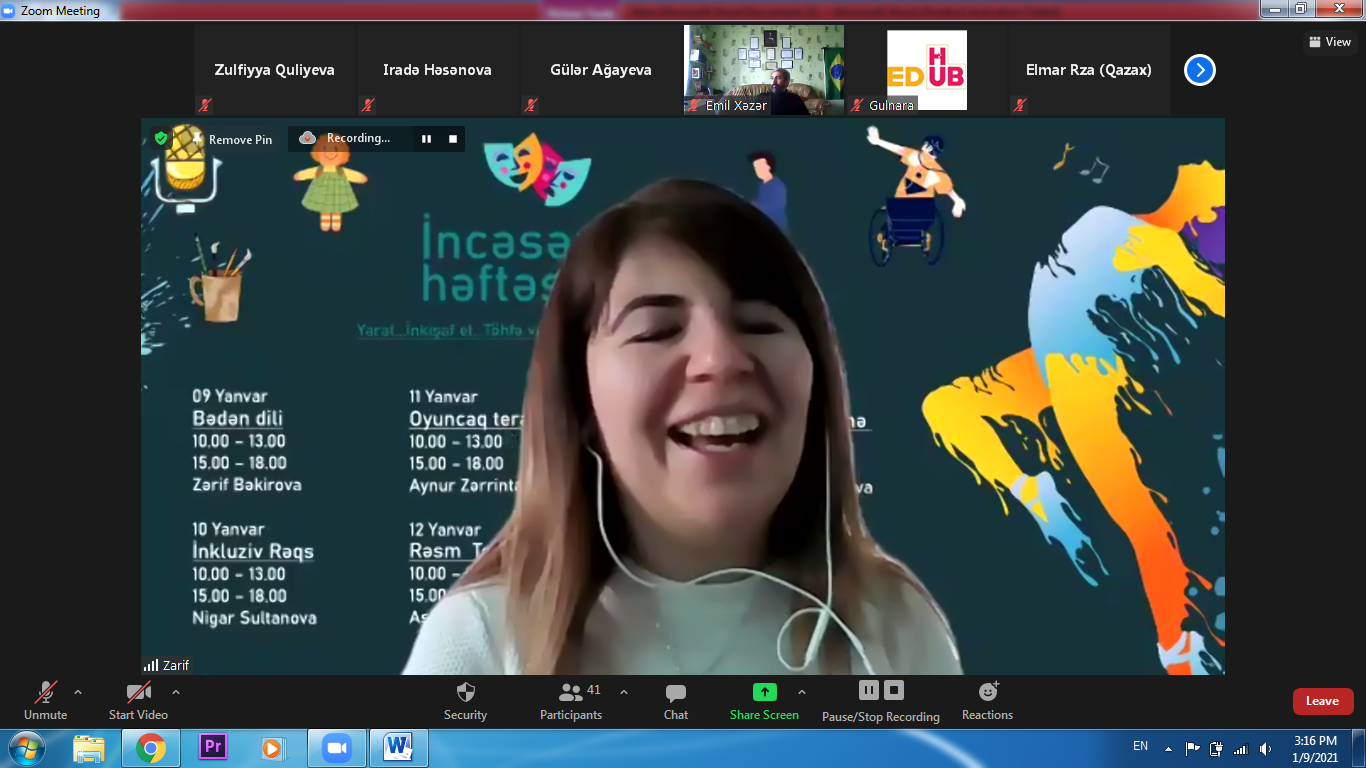 6 gün davam edən tədbir Bədən dili, İnkluziv rəqs, Rəsm terapiyası, Oyuncaq hazırlama texnikası, Hekayə söyləmə və Pantomim teatr növünə həsr olunub.