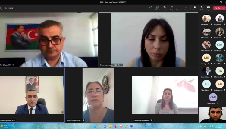 “Microsoft Teams” platforması üzərindən onlayn formatda təşkil olunan “Açıq qapı” günündə MDU-nun rektoru Şahin Bayramov universitetin tələbələri, magistrantları və onların valideynləri ilə görüşüb. Görüşdə universitetin akademik və inzibati heyət üzvləri də iştirak ediblər.