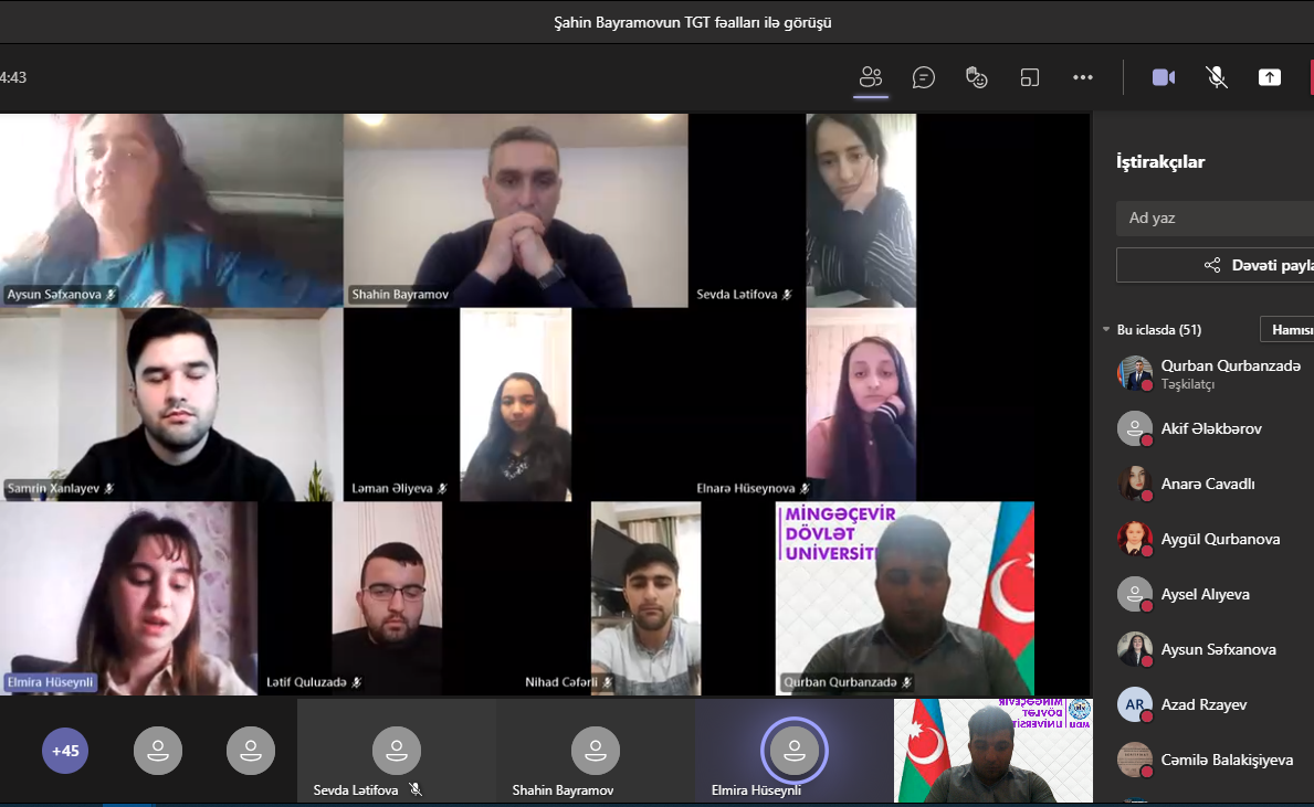 2021-ci ilin 13 aprel tarixində Mingəçevir Dövlət Universitetinin (MDU) rektoru Şahin Bayramov Tələbə Gənclər Təşkilatının bir qrup fəal üzvü ilə görüş keçirib.